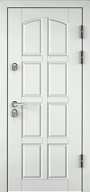 Эта классическая белая входная дверь с прямоугольниками №29 привнесет элегантность и надежность в ваш дом. Ее конструкция состоит из профильных труб 50х25 мм и листа металла толщиной 2 мм, что гарантирует высокую прочность. Внешняя и внутренняя отделка из МДФ придает двери стильный вид, а устойчивость к повреждениям позволяет сохранить первоначальный облик на долгие годы. Благодаря двухконтурному резиновому уплотнителю, дверь эффективно защищает от холода и шума. Замки Просам и Мосрентген с тремя ригелями обеспечивают надежную защиту от несанкционированного доступа. Кроме того, в эту модель можно добавить стеклопакет, зеркало или кованые элементы, адаптируя дверь под любые дизайнерские решения. Классическая белая входная дверь в частный дом с прямоугольниками №29 от производителя: быстрое изготовление и монтаж в Софрино, индивидуальные размеры, широкий выбор материалов и фурнитуры, официальная гарантия до 10 лет.