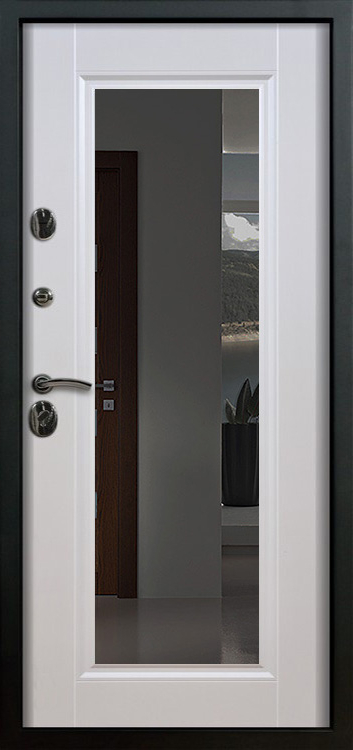 Металлическая входная дверь с зеркалом внутри №1 создана как универсальное решение для дома, квартиры или офиса, где важны и безопасность, и комфорт. Каркас выполнен из прочной профильной трубы с металлическим листом толщиной 2 мм и рёбрами жёсткости, что обеспечивает устойчивость к механическим воздействиям и долгий срок службы. Снаружи дверь покрыта порошковой окраской, стойкой к атмосферным влияниям и царапинам, а изнутри отделана МДФ с ПВХ-покрытием, которое сохраняет свежий вид даже при интенсивной эксплуатации. Встроенное зеркало превращает полотно в практичный элемент интерьера: оно визуально расширяет пространство прихожей и избавляет от лишних предметов мебели. Два контура уплотнителей защищают от пыли и сквозняков, а блокираторы усиливают общую надёжность конструкции. Модель не оснащена терморазрывом, зато отличается продуманным балансом практичности и доступной цены, оставаясь удобным вариантом для повседневного использования. Металлическая входная дверь с зеркалом внутри №1 от производителя: быстрое изготовление и монтаж в Софрино, индивидуальные размеры, широкий выбор материалов и фурнитуры, официальная гарантия до 10 лет.