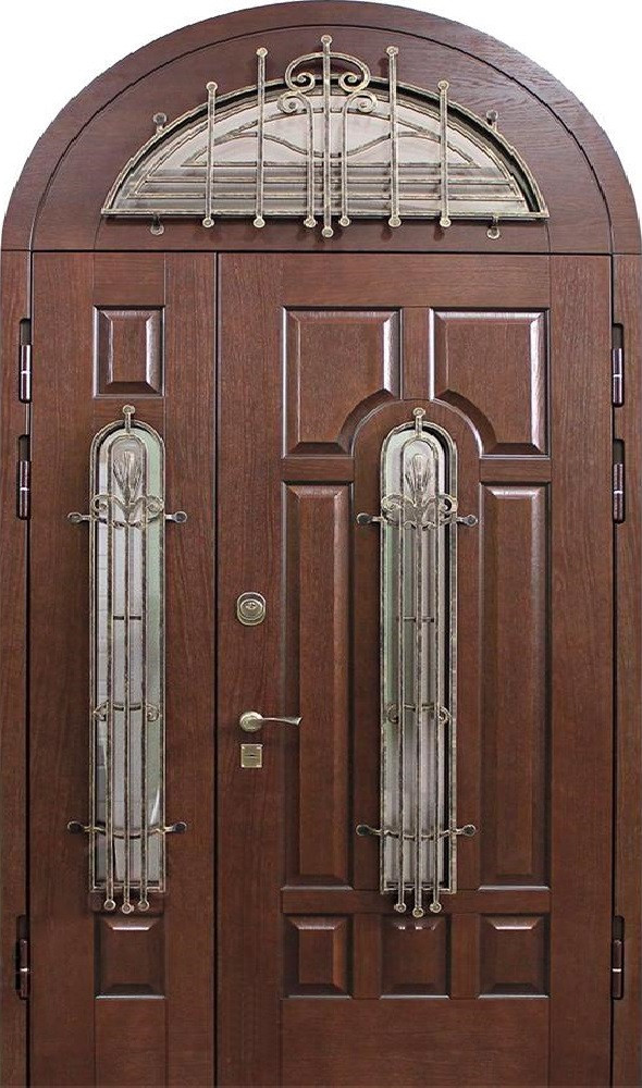 Арочные конструкции всегда придают входу выразительность и особый статус, а если добавить две створки и стеклянные вставки, дверь превращается в центральный элемент фасада. Натуральное дерево в отделке подчеркивает солидность и гармонично сочетается с металлом, из которого выполнено основание: каркас и полотно из профильных труб и стальной лист толщиной 2 мм обеспечивают прочность и долговечность. Для удобства и безопасности используются два замка разного типа — сувальдный и цилиндровый, оба с тремя ригелями, что делает взлом крайне затруднительным. Двухстворчатая арочная дверь со стеклом в частный дом №14 может изготавливаться любого размера и адаптироваться под архитектуру конкретного здания. Возможна установка дополнительных элементов: зеркало, стеклопакет, кованые детали или даже видеодомофон. Резиновое уплотнение по двум контурам защищает от сквозняков, а возможность выбора отделки и фурнитуры открывает простор для индивидуального дизайна. Двухстворчатая арочная дверь со стеклом в частный дом №14 от производителя: быстрое изготовление и монтаж в Софрино, индивидуальные размеры, широкий выбор материалов и фурнитуры, официальная гарантия до 10 лет.