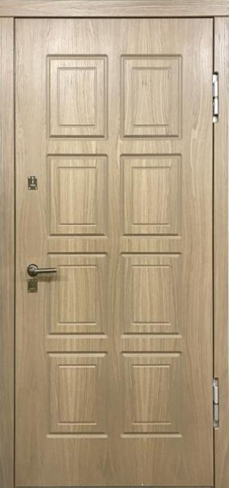 Дверь входная в частный дом №44 сочетает в себе надёжность стальной основы и практичность декоративной отделки. Каркас и полотно из профильной трубы с листом металла толщиной 2 мм обеспечивают устойчивость к нагрузкам, а рёбра жёсткости повышают общую прочность конструкции. В коробке и полотне предусмотрен терморазрыв, который предотвращает промерзание и помогает сохранять тепло внутри помещения, что особенно важно для частных домов и коттеджей. Снаружи и внутри дверь облицована МДФ-накладками, материалом, устойчивым к мелким повреждениям и удобным в уходе, благодаря чему изделие долго сохраняет презентабельный вид. Двойной контур уплотнителей блокирует сквозняки и влагу, создавая дополнительный комфорт. Для безопасности установлены два замка — сувальдный Просам и цилиндровый Мосрентген, оба с трёхригельной системой. Модель легко адаптируется под пожелания заказчика: можно изменить отделку или добавить декоративные элементы, превращая дверь в индивидуальное решение для дома, офиса или квартиры. Дверь входная в частный дом №44 от производителя: быстрое изготовление и монтаж в Софрино, индивидуальные размеры, широкий выбор материалов и фурнитуры, официальная гарантия до 10 лет.