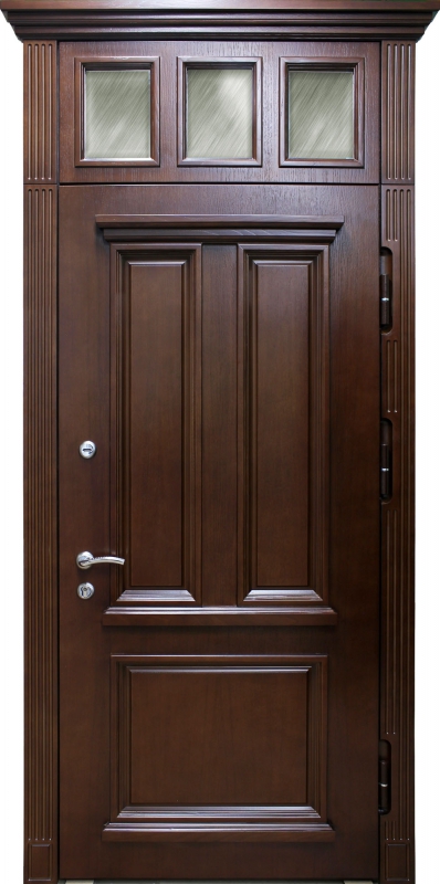 Дверь с сувальдным замком и фрамугой №34 идеально сочетает в себе стиль и надежность. Панель из натурального дерева, использованная как для внешней, так и для внутренней отделки, придает двери благородный и элегантный вид, делая её отличным выбором для помещений с классическим или современным интерьером. Каркас двери выполнен из профильной трубы 50х25 мм и усилен ребрами жесткости, что гарантирует прочность конструкции. Замки от производителей "Просам" и "Мосрентген" с тремя ригелями обеспечивают высокий уровень безопасности. Дверь оснащена уплотнителями с двумя контурами, что гарантирует отличную герметичность, а возможность замены замков и добавления кованых элементов делает её адаптируемой под любые требования. Кроме того, дверь можно дополнить зеркалом, стеклопакетом или видеодомофоном для еще большего комфорта. Входная дверь с сувальдным замком и фрамугой №34 от производителя: быстрое изготовление и монтаж в Софрино, индивидуальные размеры, широкий выбор материалов и фурнитуры, официальная гарантия до 10 лет.