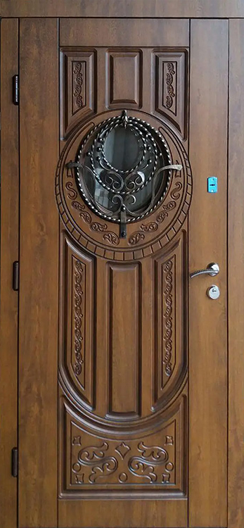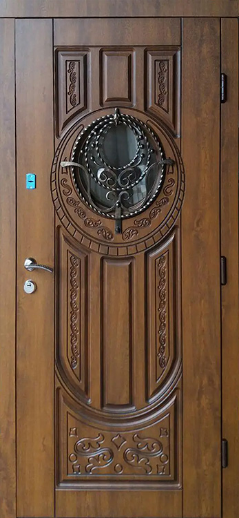 Владельцы коттеджей ценят входные конструкции, которые одинаково подчеркивают статус и защищают от любых внешних факторов. Здесь удачно сочетаются прочный металл и массив дуба, придающий поверхности солидность и благородство. Натуральное дерево сохраняет цвет и текстуру долгие годы, устойчиво к механическим повреждениям и перепадам температуры. Внутри конструкции скрыт стальной каркас толщиной 1,5 мм с ребрами жесткости и противосъёмными блокираторами, что делает полотно практически неприступным. Особое преимущество — терморазрыв коробки и полотна, благодаря которому дверь не промерзает даже в сильные морозы и сохраняет тепло в доме. Именно на этом контрасте надежности и эстетики выделяется железная дверь со стеклом и ковкой №21, украшенная изящными декоративными элементами. Три контура магнитного уплотнения обеспечивают герметичность, а система замков Kale Kilit повышает уровень безопасности, при этом конструкция допускает установку современных умных решений и дополнительных декоративных опций. Железная дверь со стеклом и ковкой №21 от производителя: быстрое изготовление и монтаж в Софрино, индивидуальные размеры, широкий выбор материалов и фурнитуры, официальная гарантия до 10 лет.