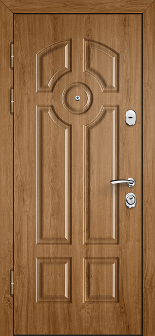 Филёнчатая отделка всегда придаёт дверному полотну особый шарм, создавая эффект глубины и аккуратного рельефа. Входная дверь МДФ с внешней панелью под филёнку №537 универсальна и одинаково хорошо смотрится на фасаде частного дома, в офисе или в квартире. Отделка из МДФ-плиты устойчива к мелким повреждениям, не выгорает и сохраняет аккуратный вид при ежедневной эксплуатации, а при необходимости легко комбинируется с другими декоративными элементами. В основе конструкции — каркас из профильной трубы, лист стали толщиной 2 мм и рёбра жёсткости, обеспечивающие надёжность и жёсткость всей системы. Для удобства и безопасности предусмотрены два замка: сувальдный Просам и цилиндровый Мосрентген. Два контура уплотнения повышают комфорт эксплуатации, а при желании дверь можно дополнить зеркалом, стеклопакетом или коваными вставками, сделав её не только прочной, но и выразительной частью интерьера. Входная дверь МДФ и внешней панелью под филенку №537 от производителя: быстрое изготовление и монтаж в Софрино, индивидуальные размеры, широкий выбор материалов и фурнитуры, официальная гарантия до 10 лет.