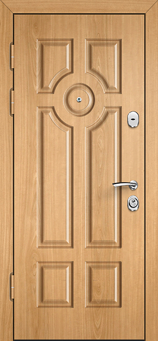 Входная дверь наружная с терморазрывом №24 — это надежное решение для частного дома или коттеджа, сочетающее в себе прочность и высокую тепло- и шумоизоляцию. Внешняя и внутренняя отделка выполнены из МДФ с ПВХ, что придает двери современный и долговечный вид, устойчивый к механическим повреждениям и внешним воздействиям. Терморазрыв в коробке и полотне значительно снижает теплопотери, что особенно важно для сохранения тепла в зимнее время. Тройной контур магнитного уплотнения и пенопласт повышенной плотности обеспечивают отличную шумоизоляцию, создавая комфорт в вашем доме. Усиленная конструкция с ребрами жесткости и противосъёмными блокираторами добавляет безопасности, а замки турецкого производства Kale Kilit обеспечивают надежную защиту. Возможность выбора отделки, а также установка зеркала, стеклопакета или кованых элементов делают эту дверь не только практичной, но и стильной. Дверь наружная с терморазрывом №24 от производителя: быстрое изготовление и монтаж в Софрино, индивидуальные размеры, широкий выбор материалов и фурнитуры, официальная гарантия до 10 лет.
