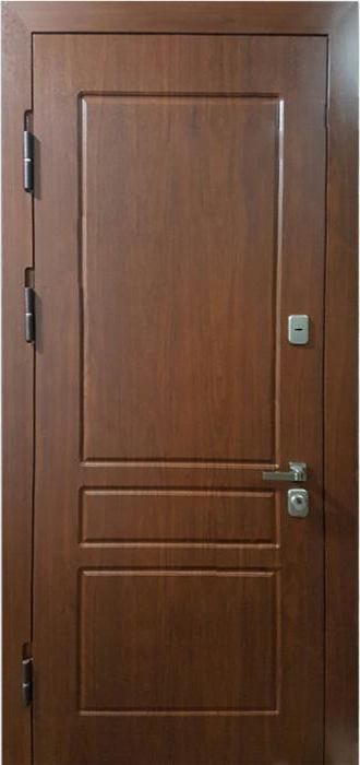 Дверь входная уличная с терморазрывом №41 – это надежная и стильная модель, идеально подходящая для частных домов и коттеджей. Конструкция двери с терморазрывом в коробке и полотне эффективно защищает от холодного воздуха и влаги, обеспечивая стабильный микроклимат внутри помещения. Внешняя и внутренняя отделка из панелей МДФ с ПВХ покрытием не только привлекает внимание своим современным дизайном, но и обеспечивает отличную стойкость к механическим повреждениям, а также долговечность. Металлическое полотно толщиной 1,5 мм с ребрами жесткости из профильных труб гарантирует высокую прочность, а также надежную защиту от взлома. Шумо- и теплоизоляция из пенопласта повышенной плотности создают дополнительный комфорт. Дверь оснащена высококачественными замками Kale Kilit с тремя ригелями, что обеспечивает высокий уровень безопасности. Дверь входная уличная с терморазрывом №41 от производителя: быстрое изготовление и монтаж в Софрино, индивидуальные размеры, широкий выбор материалов и фурнитуры, официальная гарантия до 10 лет.