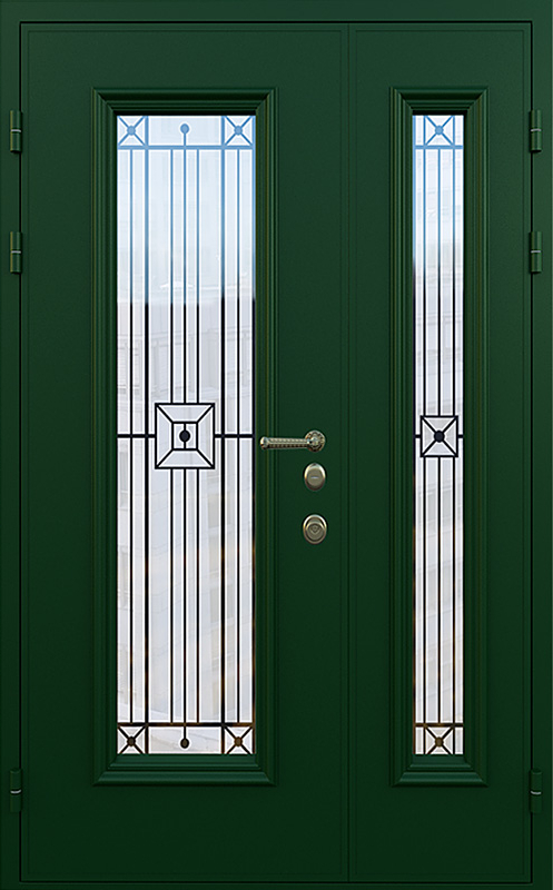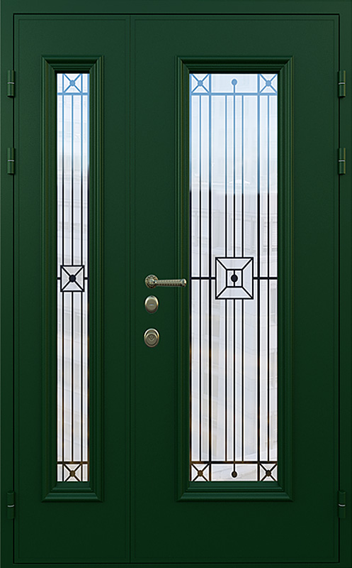 Зеленая полуторная дверь со стеклопакетом для частного дома №18 — это идеальный выбор для тех, кто хочет добавить в свой дом надежность и стиль. Элементы декора, такие как багет и ковка, придают двери элегантный вид, который идеально гармонирует с фасадом загородного дома. Панели МДФ с ПВХ-покрытием, использованные для внешней и внутренней отделки, обеспечивают высокую стойкость к механическим повреждениям и внешним воздействиям, сохраняя прекрасный внешний вид на долгое время. Зеленая полуторная дверь со стеклопакетом для частного дома №18 от производителя: быстрое изготовление и монтаж в Софрино, индивидуальные размеры, широкий выбор материалов и фурнитуры, официальная гарантия до 10 лет.