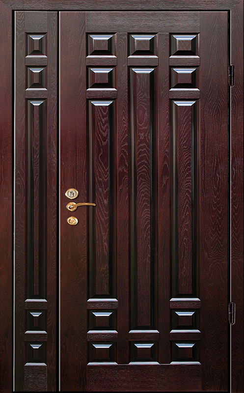 Эта двухстворчатая парадная дверь с объемной фрезеровкой №3 станет отличным акцентом в любом интерьере, добавив элегантности и солидности. Внешняя и внутренняя отделка из натурального дерева придает двери натуральный и стильный вид, который легко впишется как в классические, так и современные дизайны. Прочная конструкция двери с каркасом из профильной трубы 50х25 мм и листом металла толщиной 2 мм гарантирует долговечность и защиту. Ребра жесткости из профильных труб 40х25 мм повышают ее устойчивость к нагрузкам. Замки "Просам" и "Мосрентген" с тремя ригелями обеспечивают надежную защиту. Возможность выбора отделки и установки дополнительных элементов, таких как зеркало, стеклопакет или кованые детали, позволяет сделать дверь уникальной и подходящей под любые требования. Терморазрыв полотна и коробки способствует улучшению теплоизоляции. Вдобавок можно оснастить дверь современными замками и видеодомофоном для дополнительного комфорта и безопасности. Парадная двухстворчатая дверь с объемной фрезеровкой №3 от производителя: быстрое изготовление и монтаж в Софрино, индивидуальные размеры, широкий выбор материалов и фурнитуры, официальная гарантия до 10 лет.