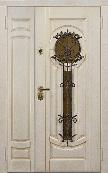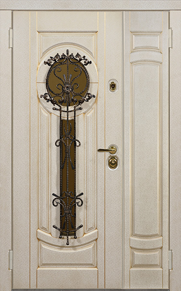 Двухстворчатая парадная дверь с ковкой и стеклом белая №30 — это сочетание красоты и надёжности. Конструкция из профильной трубы 50х25 мм и металлического листа толщиной 2 мм обеспечивает долговечность и стойкость к внешним воздействиям. Элементы ковки придают двери изысканный вид, а стеклопакет позволяет создать атмосферу лёгкости и прозрачности. Внешняя и внутренняя отделка выполнены из плиты МДФ, что делает дверь не только привлекательной, но и устойчивой к механическим повреждениям. Для дополнительной герметичности используются уплотнители с двумя контурами, а блокираторы обеспечат безопасность. Вариативность размеров и возможность добавления дополнительных опций, таких как шумо- и теплоизоляция, делают эту модель универсальной для установки в любом интерьере. Двухстворчатая парадная дверь с ковкой и стеклом белая №30 от производителя: быстрое изготовление и монтаж в Софрино, индивидуальные размеры, широкий выбор материалов и фурнитуры, официальная гарантия до 10 лет.