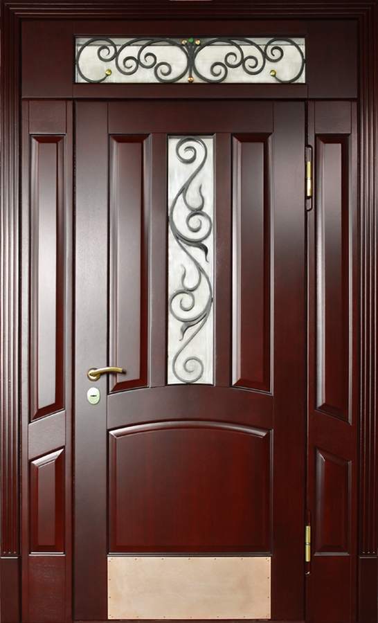 Красивая шпонированная дверь с надежной фурнитурой и ковкой "лоза" №33 идеально дополнит интерьер вашего частного дома или коттеджа. Внешняя и внутренняя отделка выполнены из натурального дерева, что придает двери элегантность и стиль. Профильная труба 50х25 мм используется для каркаса и полотна, а лист металла толщиной 2 мм и ребра жесткости из профильных труб 40х25 мм обеспечивают прочность и долговечность. Несмотря на отсутствие терморазрыва, дверь гарантирует надежную защиту и теплоизоляцию благодаря двум контурам уплотнения. Элементы ковки "лоза" придают двери особое очарование, сочетая практичность с эстетикой. Эта дверь — идеальный выбор для тех, кто ценит стиль, качество и безопасность. Красивая шпонированная дверь с надежной фурнитурой и ковкой "лоза" №33 от производителя: быстрое изготовление и монтаж в Софрино, индивидуальные размеры, широкий выбор материалов и фурнитуры, официальная гарантия до 10 лет.