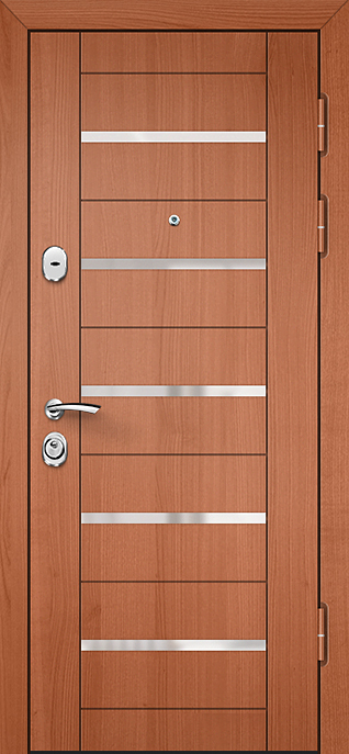 Современная входная дверь с цилиндровым замком №21 сочетает строгую надежность металлической конструкции и аккуратный внешний вид. Каркас из профильной трубы и лист стали толщиной 2 мм образуют прочный щит, усиленный ребрами жесткости и блокираторами. Накладки из МДФ придают полотну более «домашний» облик: материал не только эстетичен, но и практичен — ПВХ-покрытие стойко переносит небольшие повреждения и сохраняет первозданный вид долгие годы. Такая дверь подходит для квартиры, офиса или частного дома, где важно совместить защиту и стиль. Цилиндровый замок обеспечивает удобное и надежное закрывание, а два контура резинового уплотнителя защищают от сквозняков и лишнего шума. При желании возможно дополнить конструкцию тепло- и шумоизоляцией или установить замки другого типа, включая современные электронные системы. Современная входная дверь с цилиндровым замком №21 от производителя: быстрое изготовление и монтаж в Софрино, индивидуальные размеры, широкий выбор материалов и фурнитуры, официальная гарантия до 10 лет.