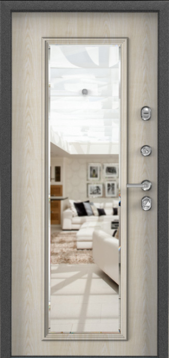 Сочетание прочной конструкции и декоративных решений делает эту модель особенно практичной для частного дома или квартиры. Каркас и полотно выполнены из профильной трубы с листом стали толщиной 2 мм, усиленные рёбрами жёсткости и блокираторами, что обеспечивает высокую надёжность. Два контура резинового уплотнителя препятствуют проникновению влаги и сквозняков, а порошковое напыление на внешней поверхности защищает металл от коррозии и сохраняет аккуратный вид даже при воздействии осадков и солнечного света. Внутренняя отделка панелями МДФ ПВХ создаёт уютный интерьерный акцент и устойчива к повседневным нагрузкам. Дверь входная металлическая уличная в дом №12 дополнена зеркалом, которое делает её не только функциональной, но и более удобной в быту. Для безопасности предусмотрены два замка российского производства — сувальдный Просам и цилиндровый Мосрентген, каждый с тремя ригелями. Дополнительно дверь можно оснастить стеклопакетом или коваными элементами, превратив её в индивидуальное решение для конкретных задач. Дверь входная металлическая уличная в дом №12 от производителя: быстрое изготовление и монтаж в Софрино, индивидуальные размеры, широкий выбор материалов и фурнитуры, официальная гарантия до 10 лет.